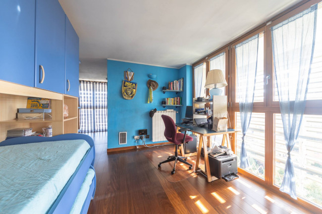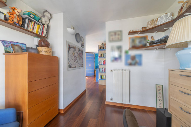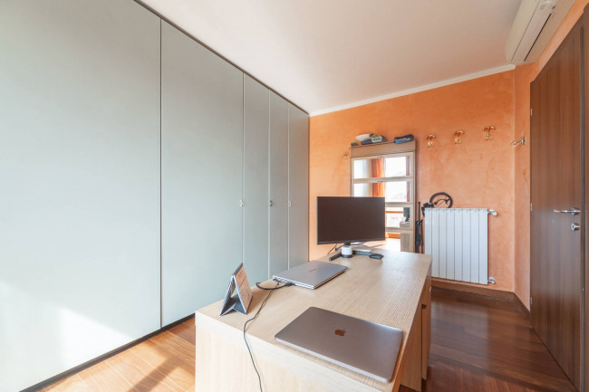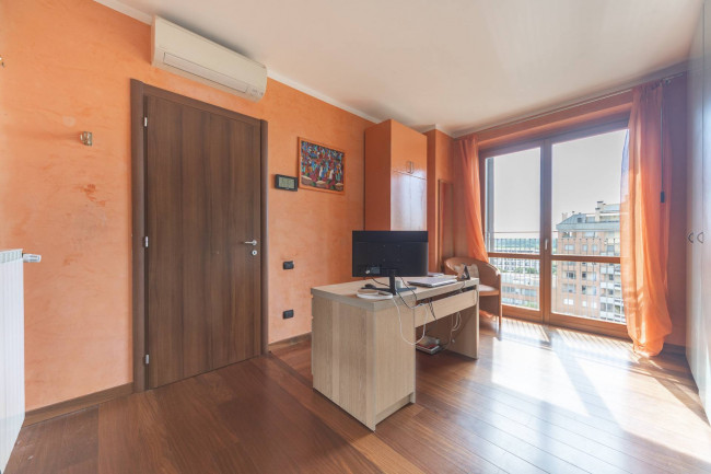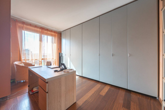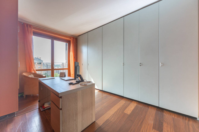 12° PIANO: collegato tramite scala interna, camera matrimoniale con bagno en suite, ampia seconda camera da letto con annessa camera ad uso studio, ampio bagno con vasca con zona lavanderia.