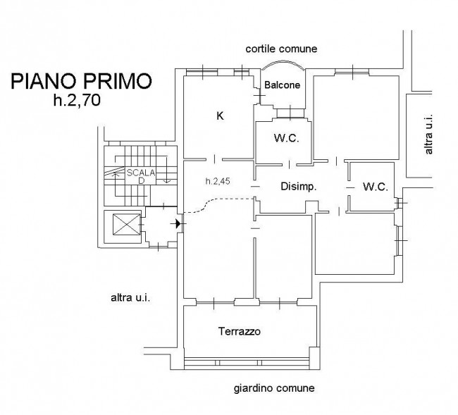 L'immobile gode di un'ottima tranquillità ed espone su un ampio giardino condominiale con tripla esposizione.